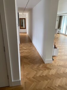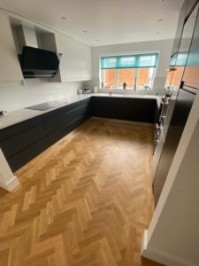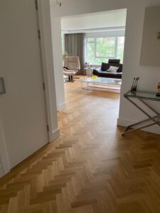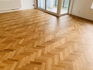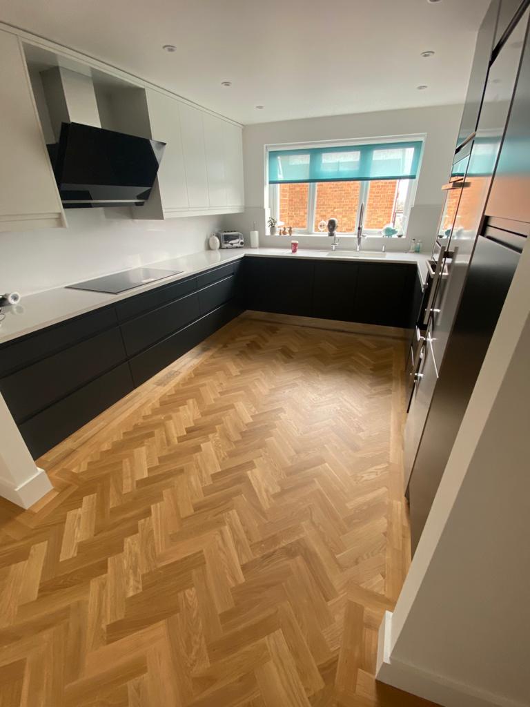 14-February-2021 Contemporary Oak Parquet By: Kin / Parquet Floor Fitting Contemporary solid oak parquet herringbone in a new flat conversion. Prime grade flooring with clear oiled finish. Client: Residential Property Location: London, E18